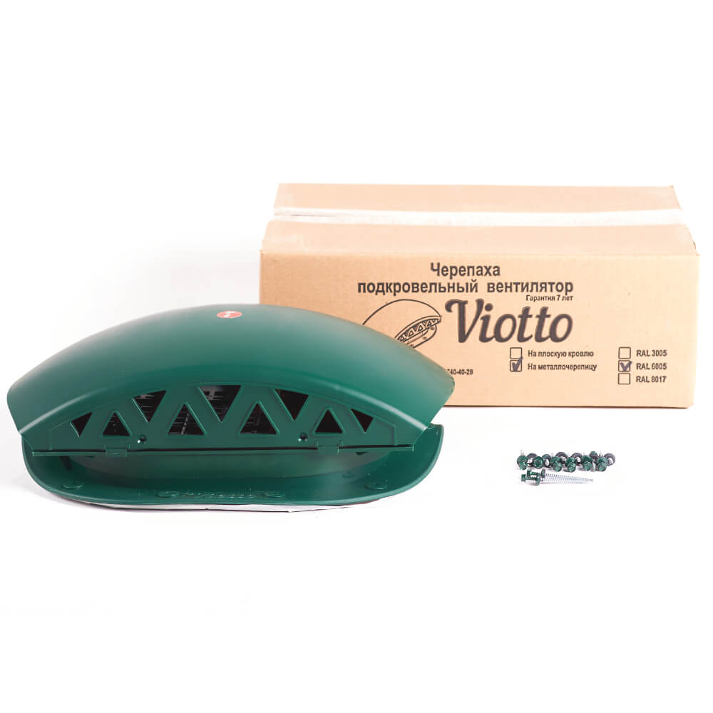 Подкровельный вентилятор "Черепаха" Viotto RAL 6005 Зеленый Мох для кровли из металлочерепицы в Костроме